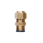 Conexão de latão por aperto rápido para terminal de mangueira 3/8" em uma das extremidades e conexão rosca de 1/2" BSP na outra (com arruela de vedação) para espera de rosca 1/2" BSP.