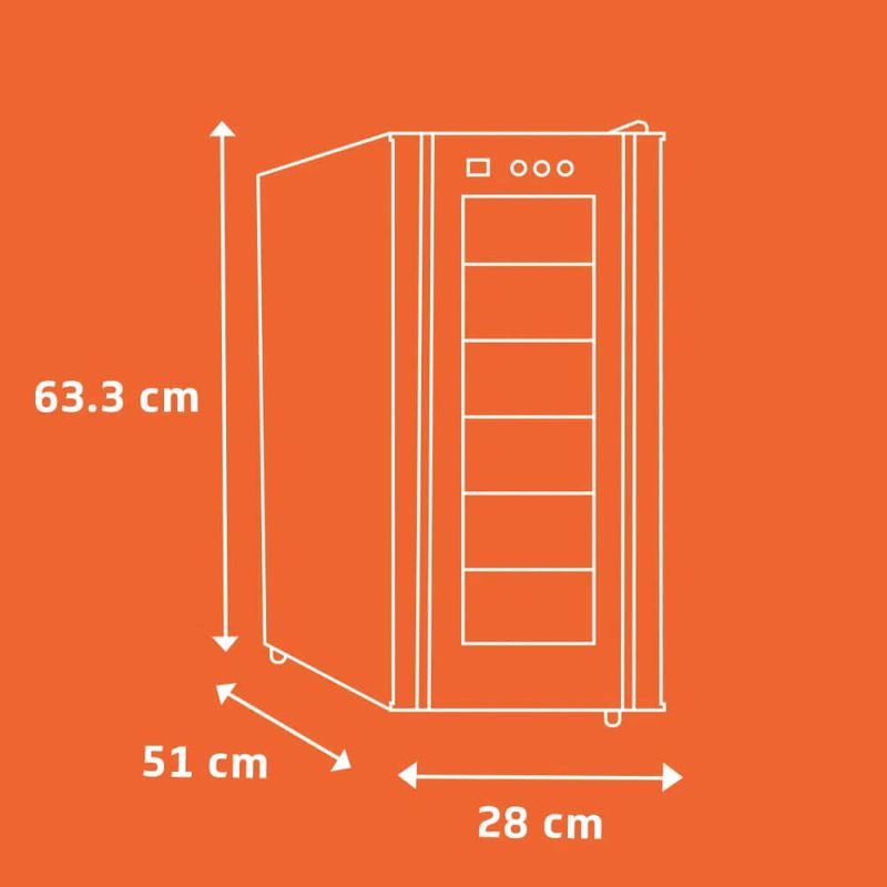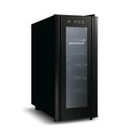 Com capacidade para 12 garrafas, esta adega possui um design sofisticado com acabamento preto e porta de vidro duplo espelhado, que adiciona um toque de requinte ao seu ambiente sem ocupar muito espaço.