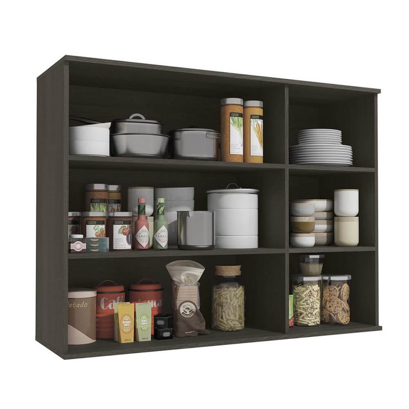 Aéreo 120 cm Nox Onix/Steel Vidro H787 Kappesberg: Organização, Modernidade e Leveza para Sua Cozinha!