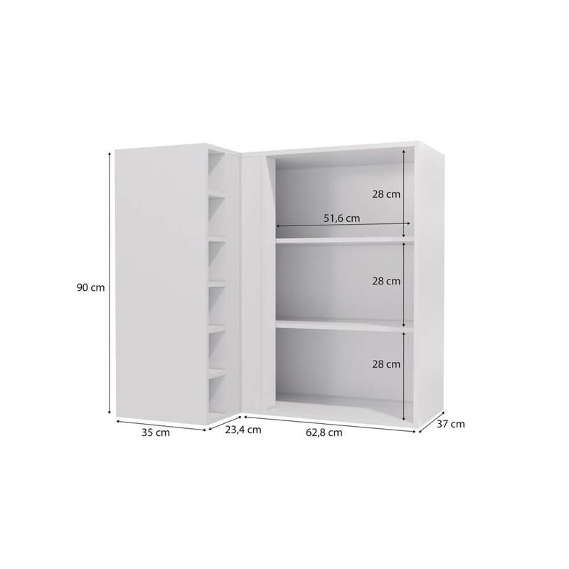 Com dimensões de 90 cm de altura, 98 cm de largura e 59 cm de profundidade, o Aéreo de Canto Maxxi G768 Kappesberg é otimizado para se encaixar em cantos, transformando espaços subutilizados em áreas funcionais e bonitas.