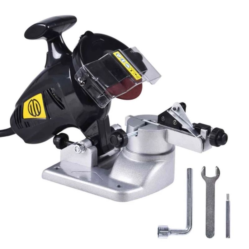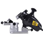 Este afiador compacto deixa uma finalização mecanizada com precisão para cortes nas correntes.