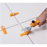 Aplicação: Após a aplicação da argamassa, insira a base do espaçador/nivelador entre a argamassa e o piso, nos 4 lados