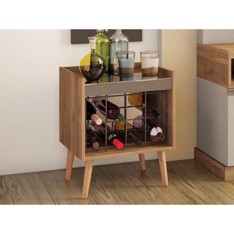 A Adega Bud tem como diferencial um exclusivo porta-rolhas de vidro.Sua estrutura aramada acondiciona até 08 garrafas. Disponível na cor Buriti com Off-White tem a opção de instalação de pés que podem
