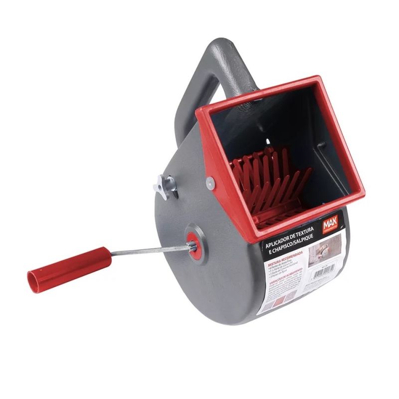 Indicado para fazer texturas e chapiscos de uma forma rápida e prática. Para usá-la, não precisa ser especialista, nem saber usar a colher de pedreiro. Basta colocar a massa do salpique ou textura dentro da máquina e girar a manivela.