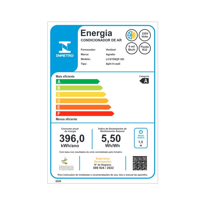 Os Splits Inverter Agratto tem certificação A do PROCEL/INMETRO e está entre os Splits mais econômicos do mercado.