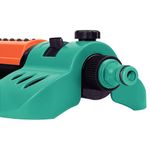 Observação: Tem uma área de cobertura de até 380 m² ou diâmetro de alcance do jato d'água de até 22 m a uma pressão de 4 bar. O aspersor é conectado em mangueiras de 1/2", 5/8" e 3/4" através de sistema de engate rápido.