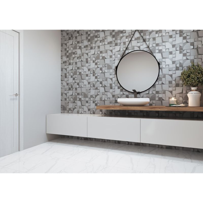 Graças ao seu processo retificado, o Azulejo Magno CM permite uma junta de assentamento mínima de apenas 2 mm. Isso cria um efeito de continuidade visual, resultando em superfícies com emendas quase imperceptíveis que ampliam o espaço e conferem uma atmosfera de modernidade e sofisticação incomparáveis.