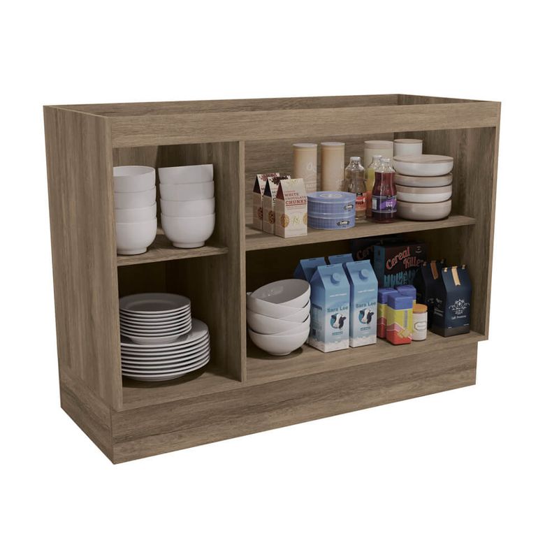 Com dimensões de: 120 x 88 x 52 cm, este balcão otimiza seu espaço, proporcionando uma organização inteligente para seus itens. Suas 02 portas de bater oferecem acesso prático, e as impressionantes 12 prateleiras internas permitem arrumação versátil e um visual sofisticado, maximizando cada centímetro.