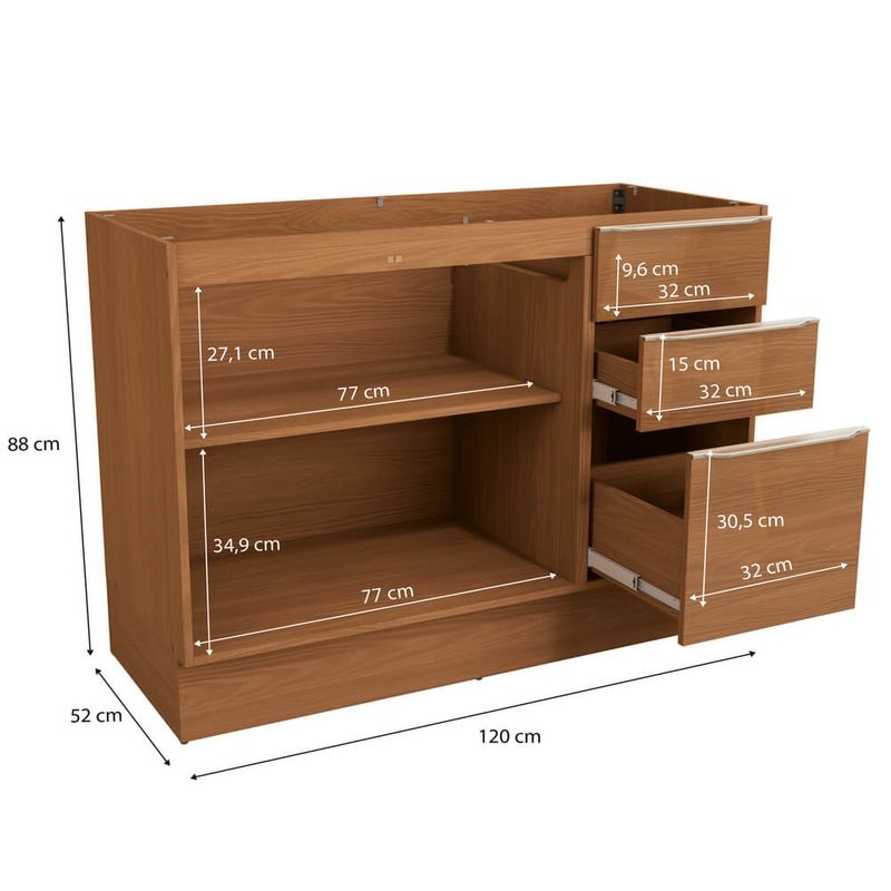 Dimensões (AxLxP): 88 x 120 x 52 cm