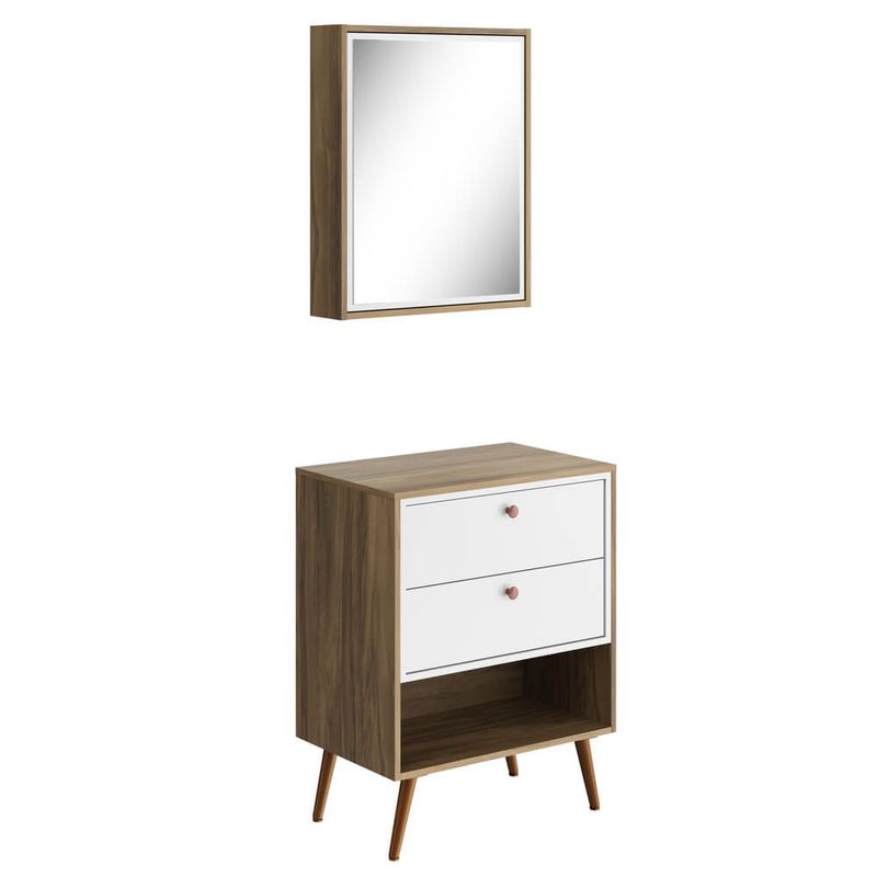 Gabinete em MDP 15mm 02 gavetas com corrediças telescópicas, nicho para acomodação de objetos e puxadores em polímero ABS. Gabinete enviado desmontado com acessórios para montagem.