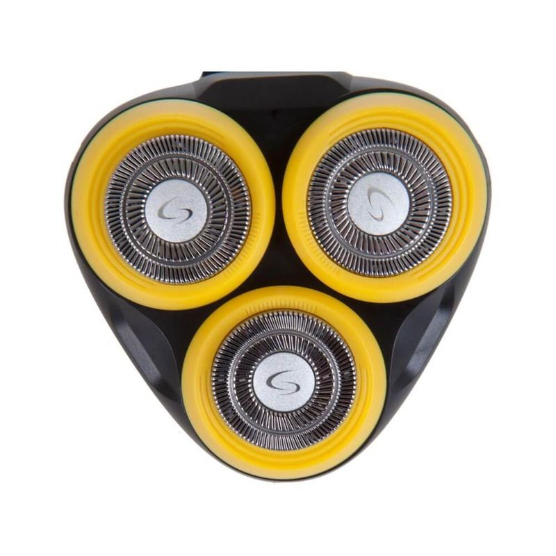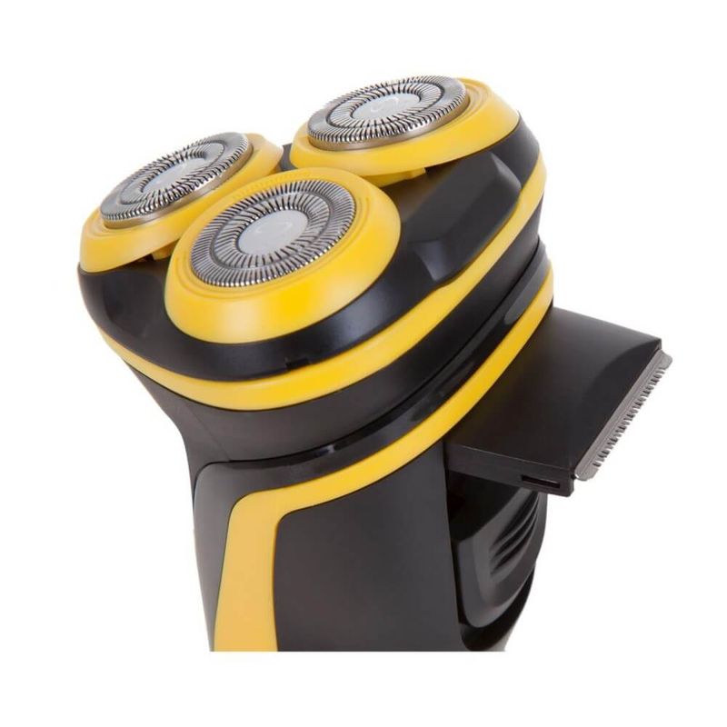 O Barbeador Elétrico GSH886 Sport vem com três lâminas na parte de cima e tem a cabeça flexível. Isso quer dizer que ele se move de acordo com as curvas do rosto. Aí o barbear fica mais rente e não machuca a pele.
