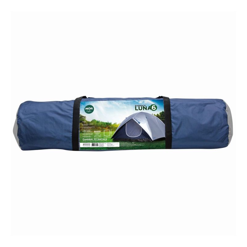 Confortável, moderna e segura, a Barraca Luna da Mor vem com uma proteção extra contra vazamentos: o sobreteto vai até o chão e é inteiramente revestido em silvercoating (material prata) que, além de deixar a barraca mais bonita, reflete a luz solar, diminuindo o calor no seu interior. Ainda, para maior proteção, o FPS é 100! Além disso, apresenta mosquiteiro na porta, no teto e na janela traseira e local para pendurar lanterna dentro da barraca. Este produto é próprio para 6 pessoas.