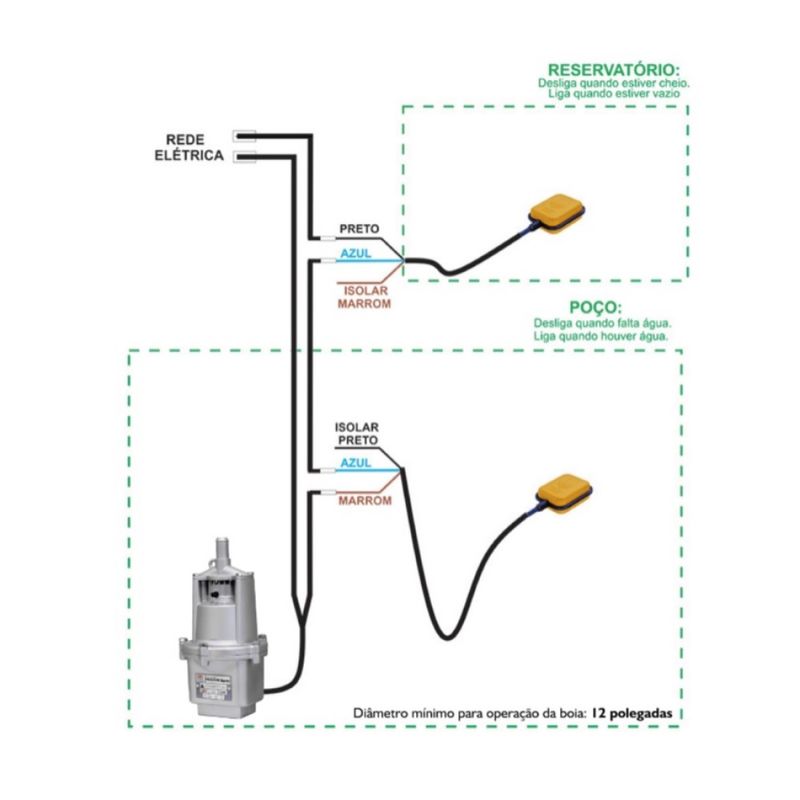 Diâmetro mínimo para a operação da boia: 12 polegadas