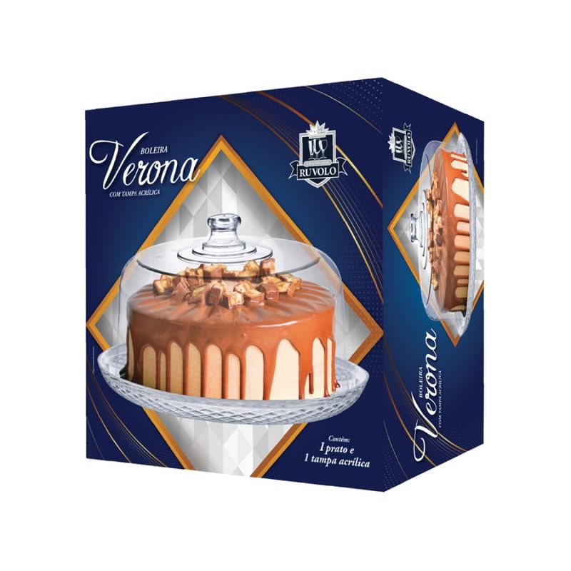 Modelo do Prato: Boleira verona com pé vidro e tampa de acrílica