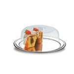 O conjunto é formado por um elegante prato em aço inox com acabamento brilhoso, que confere sofisticação à sua mesa. Acompanha uma cúpula em poliestireno, material que garante maior transparência e permite que seu bolo seja exibido por inteiro, despertando os desejos de quem vê.