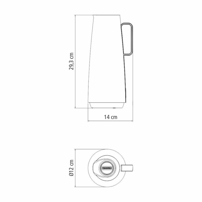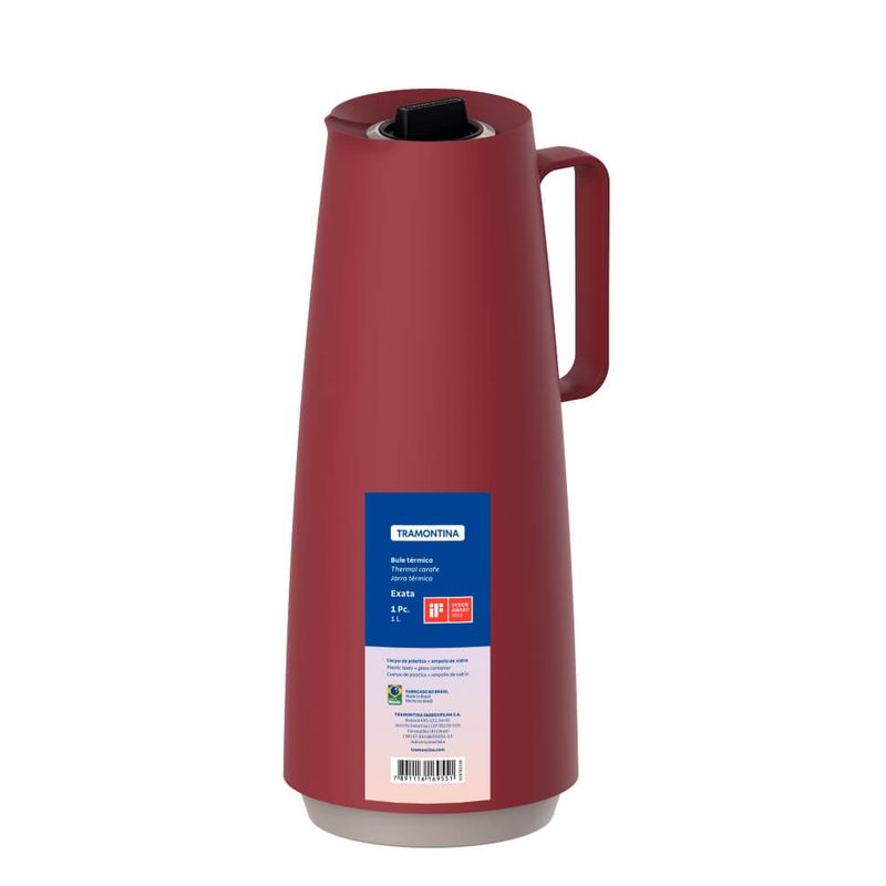 Com linhas atemporais e design clean, o bule térmico da linha Exata combina com qualquer estilo e ambiente. Ideal para manter líquidos quentes ou frios na temperatura adequada por muito mais tempo. Uso intuitivo com abertura estilo "rolha". Possui canal que direciona o fluxo da bebida para evitar respingos, sistema corta-pingos embutido e cabo confortável com toque suave e muito seguro. O bule térmico é revestido externamente de aço com pintura. Acabamento texturizado fingertip free, evitando marcas e corpo externo de aço inox e ampola de vidro. Robusto, simples e moderno, ocupa menos espaço na sua casa e durante o transporte. Leve e fácil de manusear. Higiênico e de fácil limpeza.