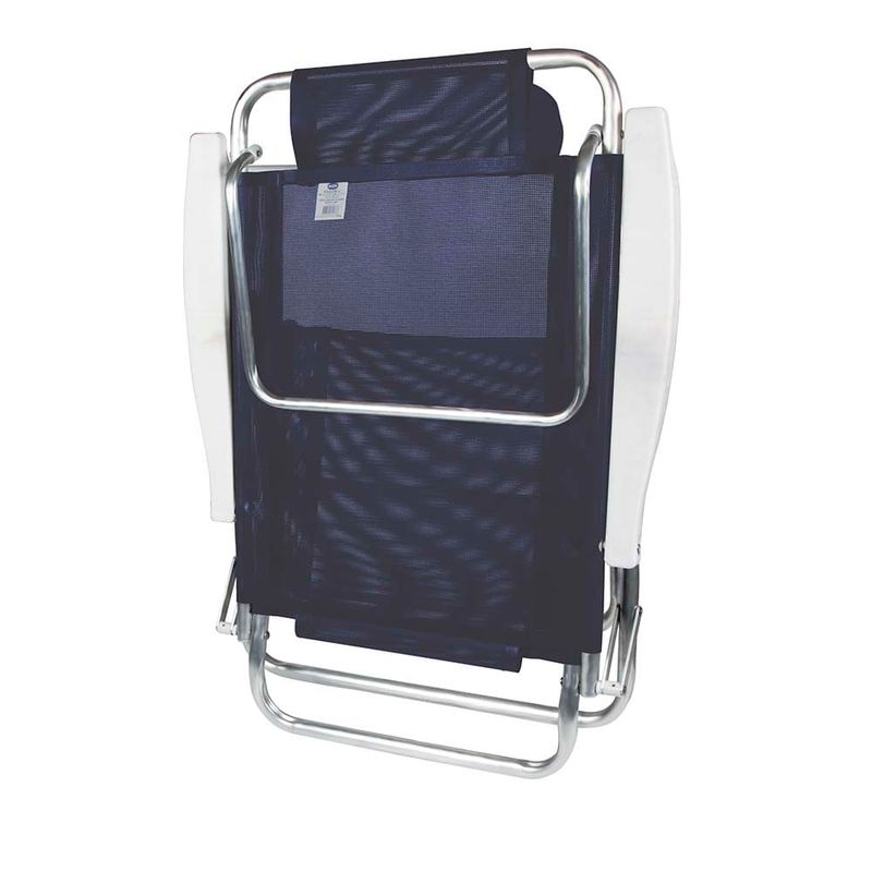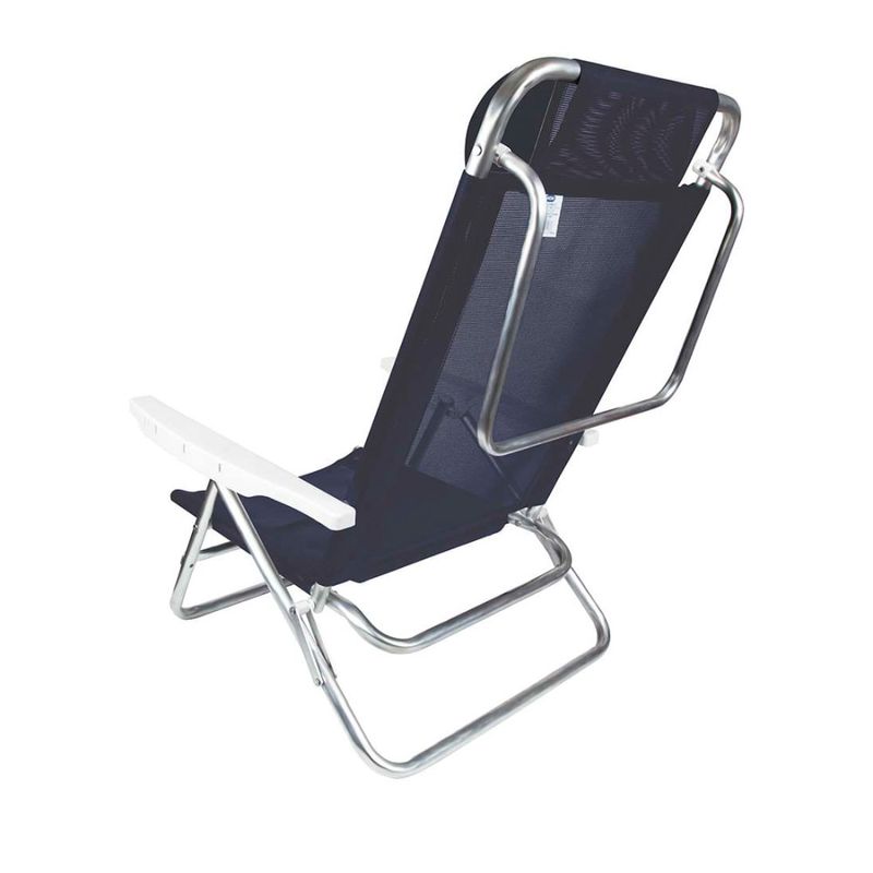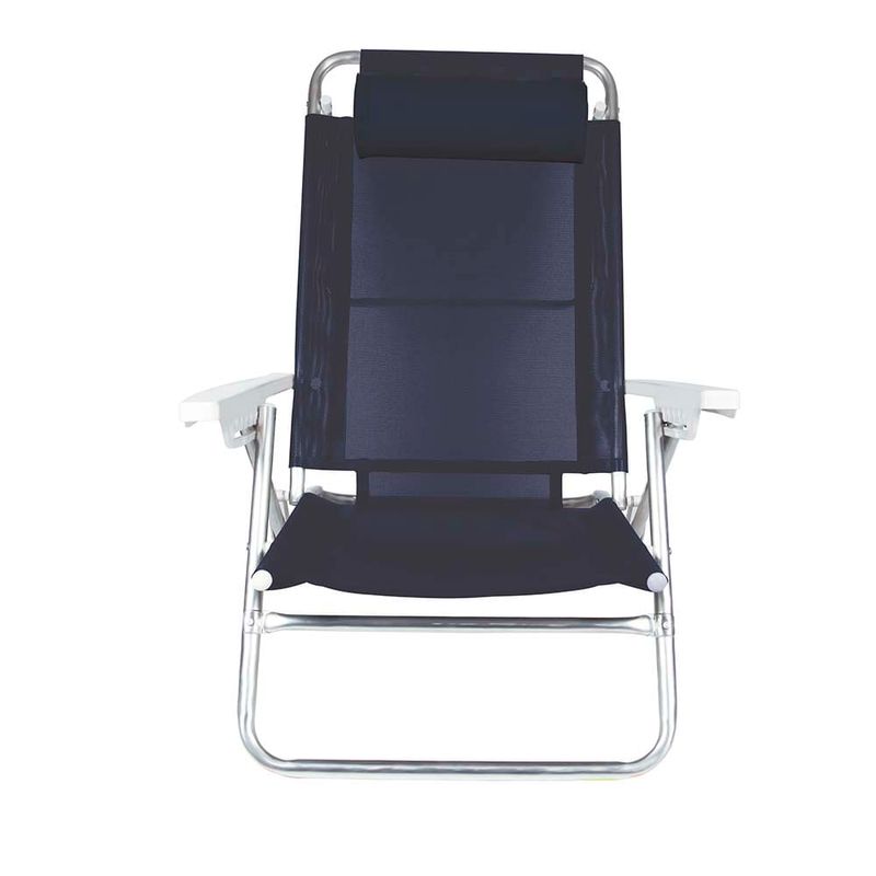 Leve e durável graças à sua estrutura de alumínio, suporta até 120 Kg. A Sol de Verão com Almofada possui seis diferentes configurações de ajustes de altura, apoio para braços e encosto alto, além de alça que serve de apoio quando utilizada na posição horizontal, proporcionando mais estabilidade. É compacta e pode ser fechada quando for guardada, ocupando pouco espaço.