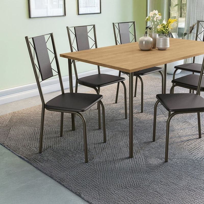 Com dimensões de: 99 x 39 x 45 cm e uma altura do assento de 46cm, estas cadeiras proporcionam uma postura ergonômica e um visual imponente para refeições ou momentos de convívio. A cor Bronze (BRZ) confere um toque de sofisticação industrial, enquanto o assento Preto (110) adiciona um contraste atemporal e uma elegância versátil.