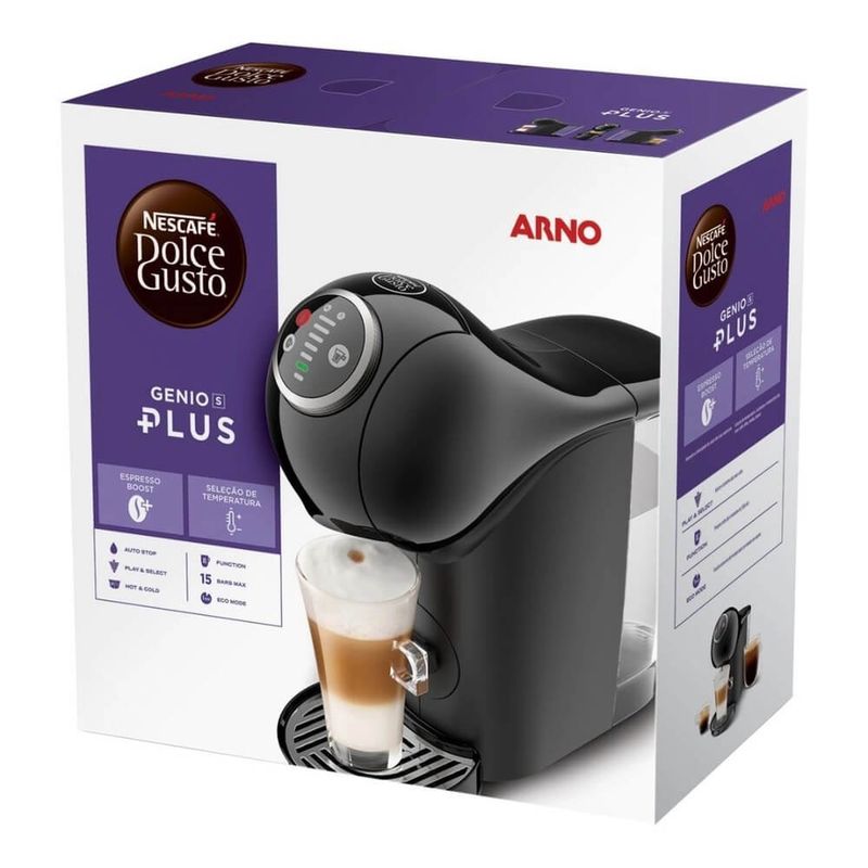 A NESCAFÉ® Dolce Gusto® Genio S Plus Preta da Arno é uma máquina MULTI-BEBIDAS que prepara mais de 30 tipos de bebidas em cápsulas com inovações a cada ano. Você pode preparar um cremoso café Espresso, um Chococcino quentinho ou até um chá gelado na sua casa com passos simples e de forma super rápida.