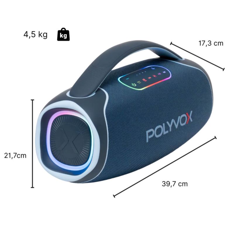 Seu sistema de som de 2 vias, somado aos radiadores passivos, garante graves reforçados mesmo em volumes mais baixos. O amplificador digital com DSP ainda permite o ajuste fino do som e do microfone via app exclusivo Polyvox ControlOne.