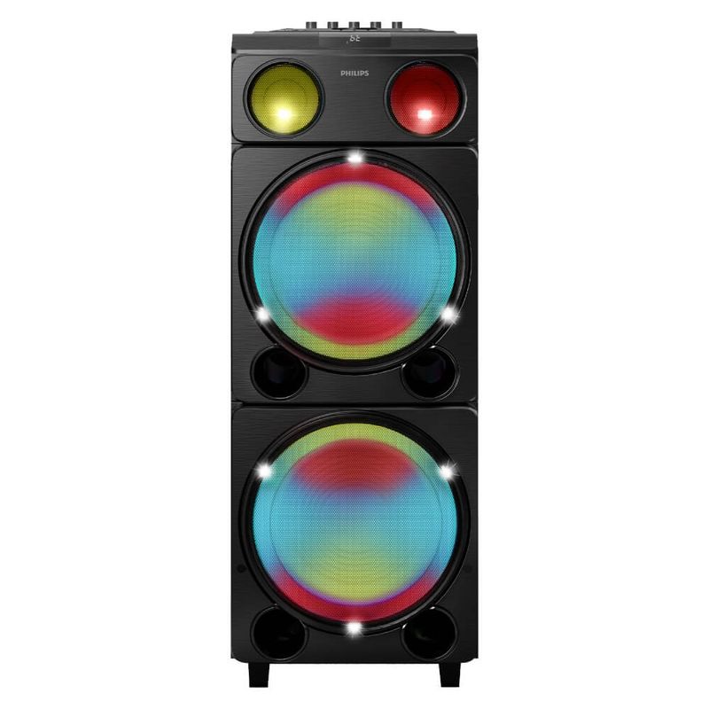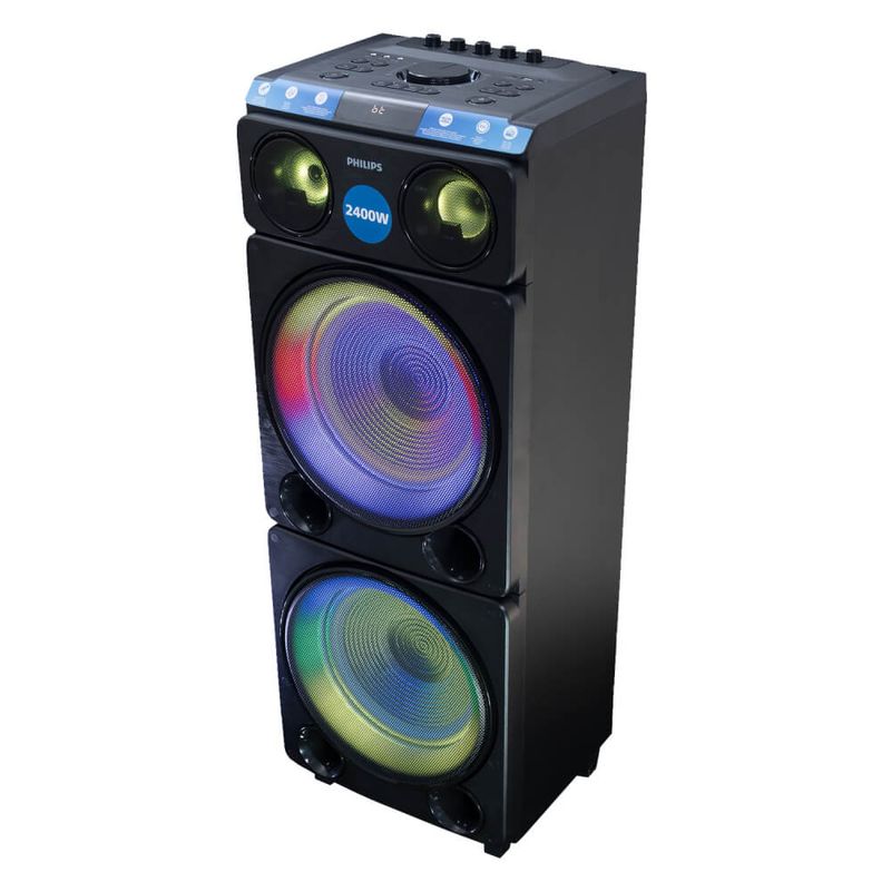 Com 2400 W de som potente, esta caixa de som Bluetooth para festas vai abalar as estruturas! Os dois woofers de 12", um driver de frequência média de 3" e um tweeter de 4" geram vozes nítidas, guitarras e sintetizadores espetaculares e graves potentes. Além disso, você pode conectar outras caixas de som sem fio para festas para ter um som ainda maior.