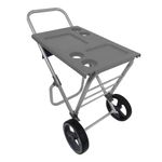 Fabricado em alumínio de alta resistência, é ideal para o litoral, pois não enferruja. Suas rodas são fortes e largas, que o fazem deslizar muito melhor na areia.