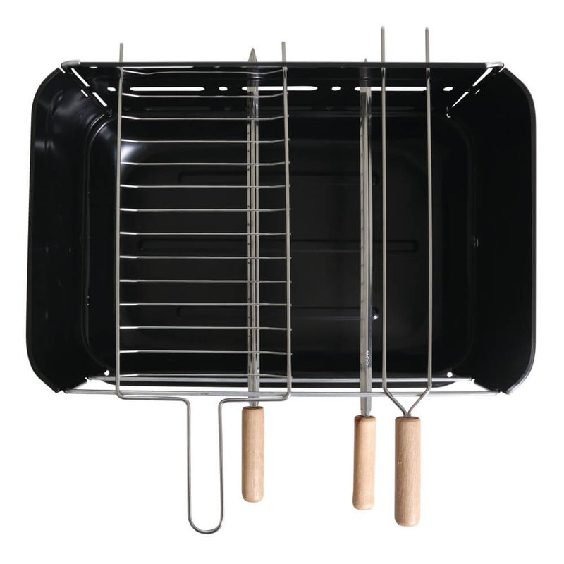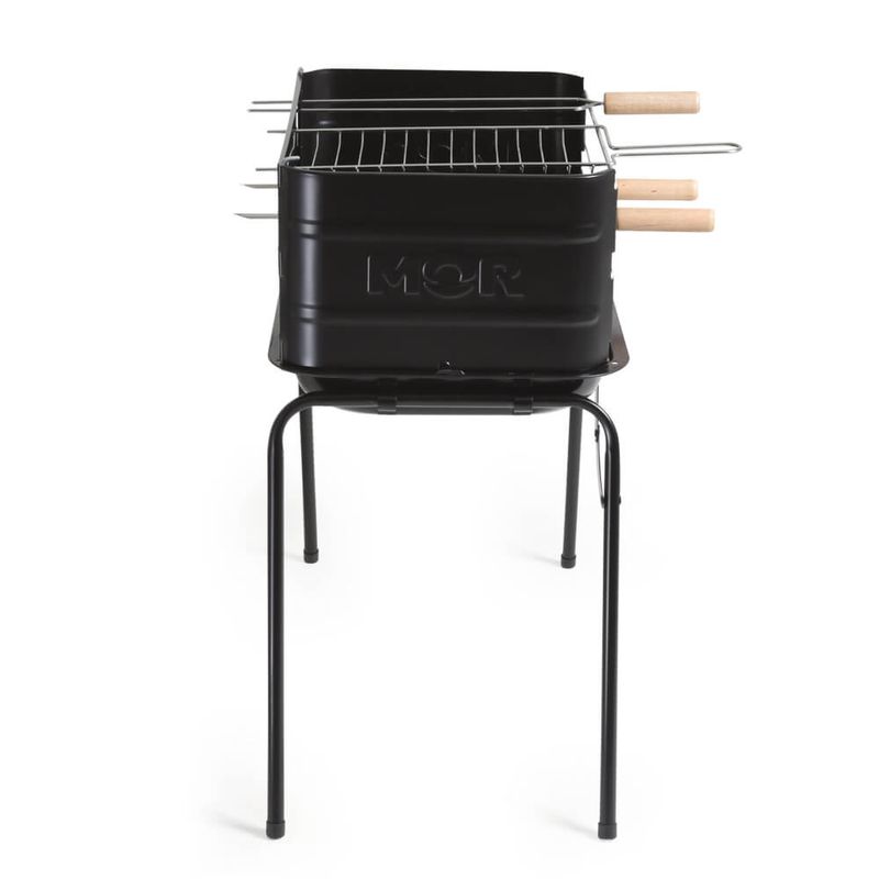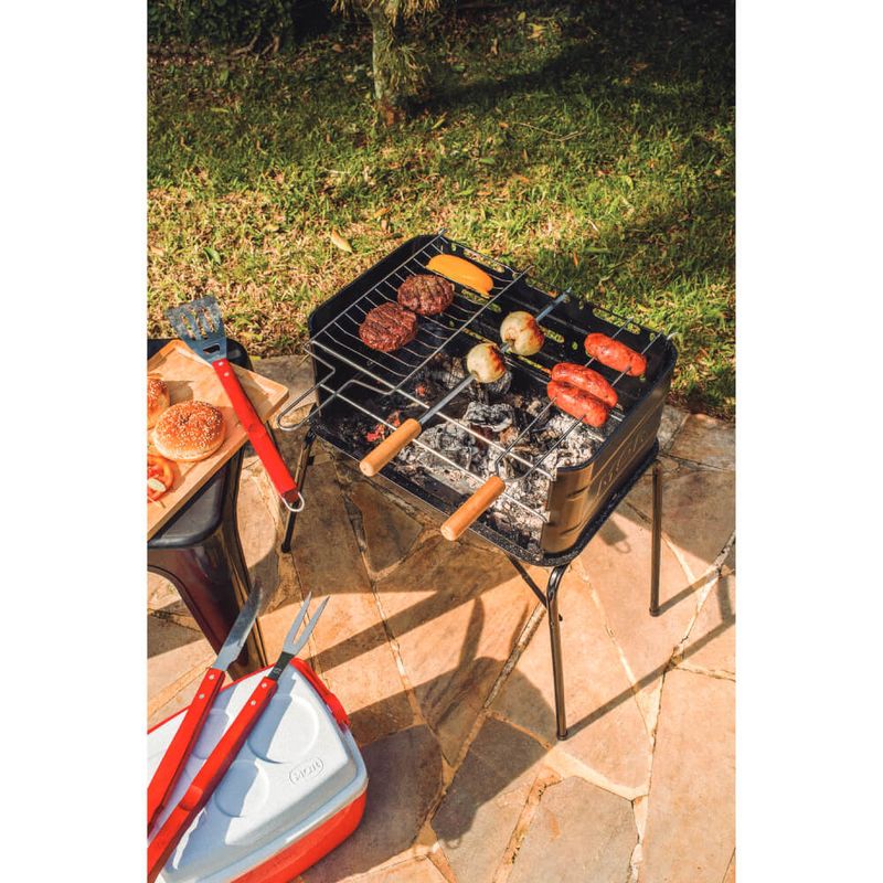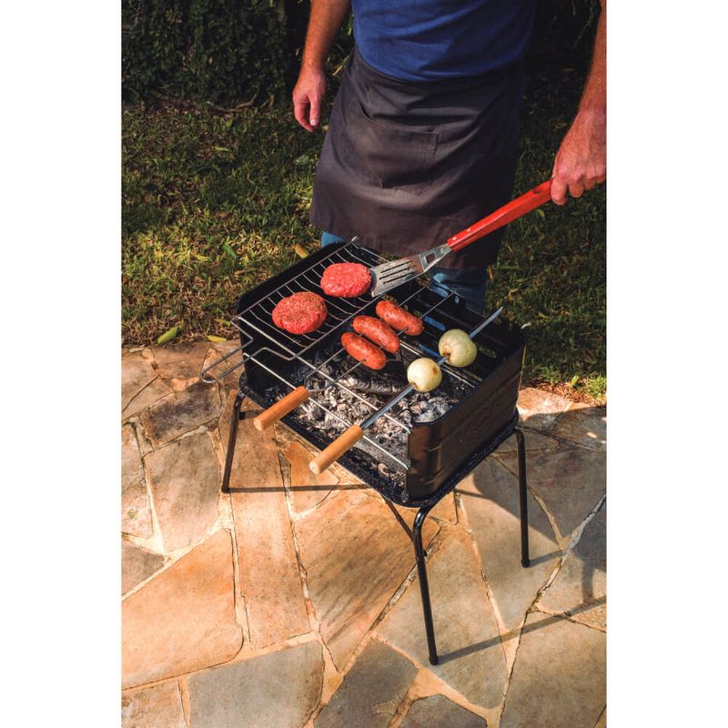 Para não perder tempo no preparo daquele saboroso churrasco, a Churrasqueira Montana da Mor é a opção perfeita! Ideal para assar as carnes de que você mais gosta a qualquer hora, ela é leve, fácil de montar, desmontar e transportar. A estrutura da Montana é resistente, composta de aço com acabamento em pintura preta à base de água e foi projetada para ser utilizada em todo tipo de ambiente externo. Além disso, ela é muito simples de limpar: basta um pano macio e úmido com sabão ou detergente neutro e pronto! Sua Montana estará prontinha para a próxima utilização e garantindo sua durabilidade. Além de ter o tamanho ideal para você curtir um churrasquinho com os amigos ? possui dois suportes com alturas diferentes para posicionar seus espetos - ela já vem com acessórios cromados: uma grelha, dois espetos simples e um espeto duplo, prontinha para a inauguração! Garanta já a sua!