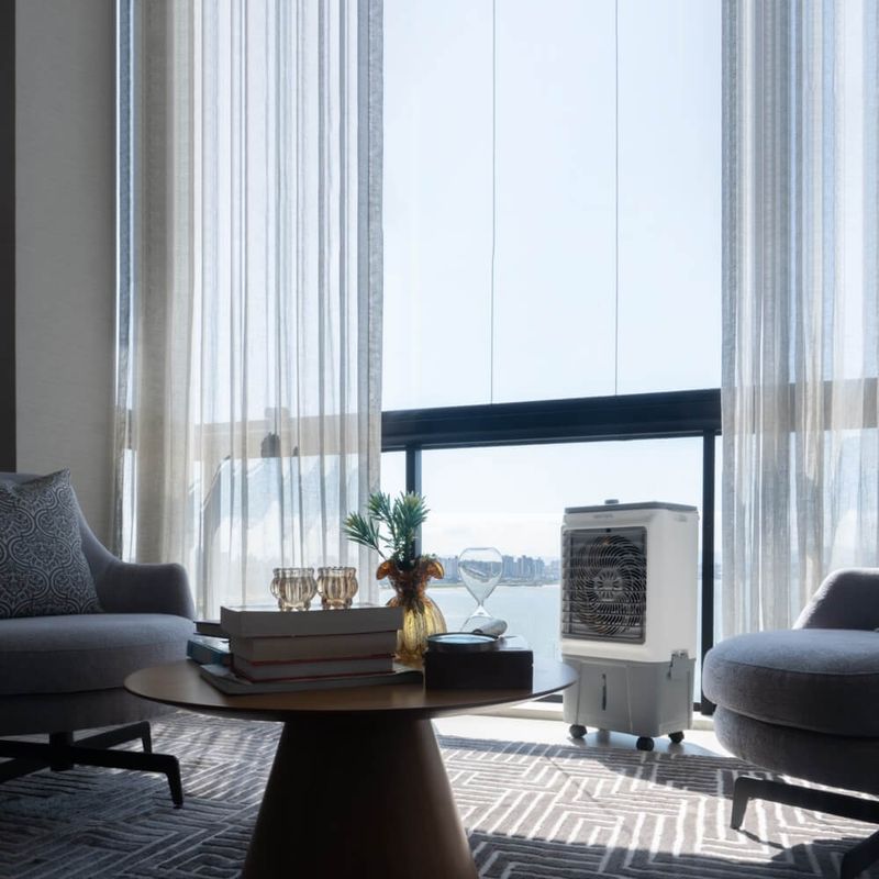 • O Sistema evaporativo com trocador de calor torna o ambiente mais fresco.