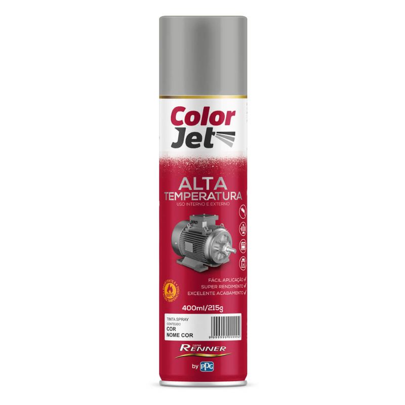 Color Jet Alta Temperatura é uma tinta spray indicada para aplicação em superfícies metálicas expostas à temperatura de até 600°C. Especialmente recomendada para pinturas de partes externas de objetos como escapamentos de automóveis e motos, churrasqueiras, chaminés e lareiras.