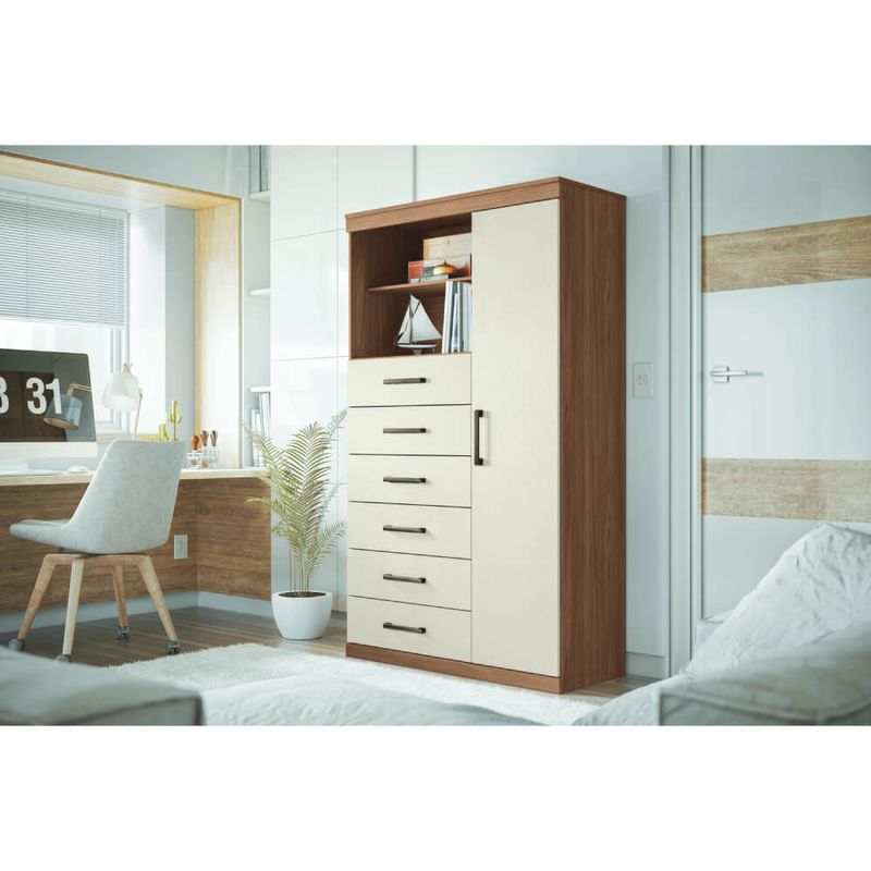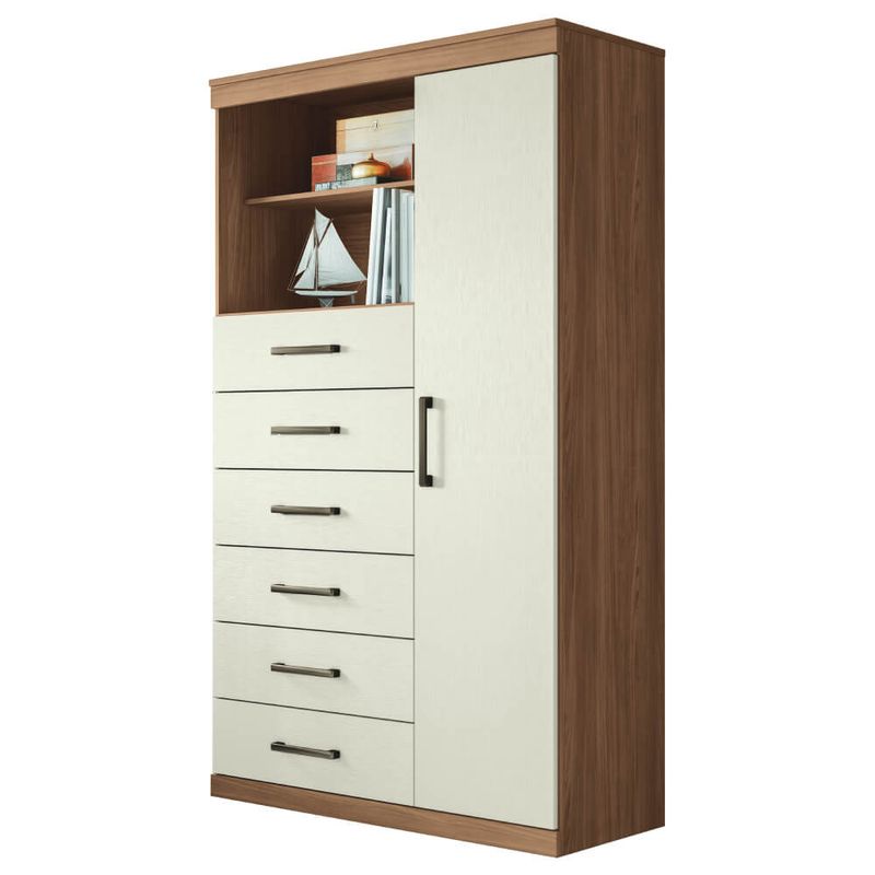 Renove o seu espaço com a cômoda com 1 porta e 6 gavetas Marabá Santos Andirá Jatobá Areia e desfrute de um móvel que alia beleza, funcionalidade e qualidade em cada detalhe.