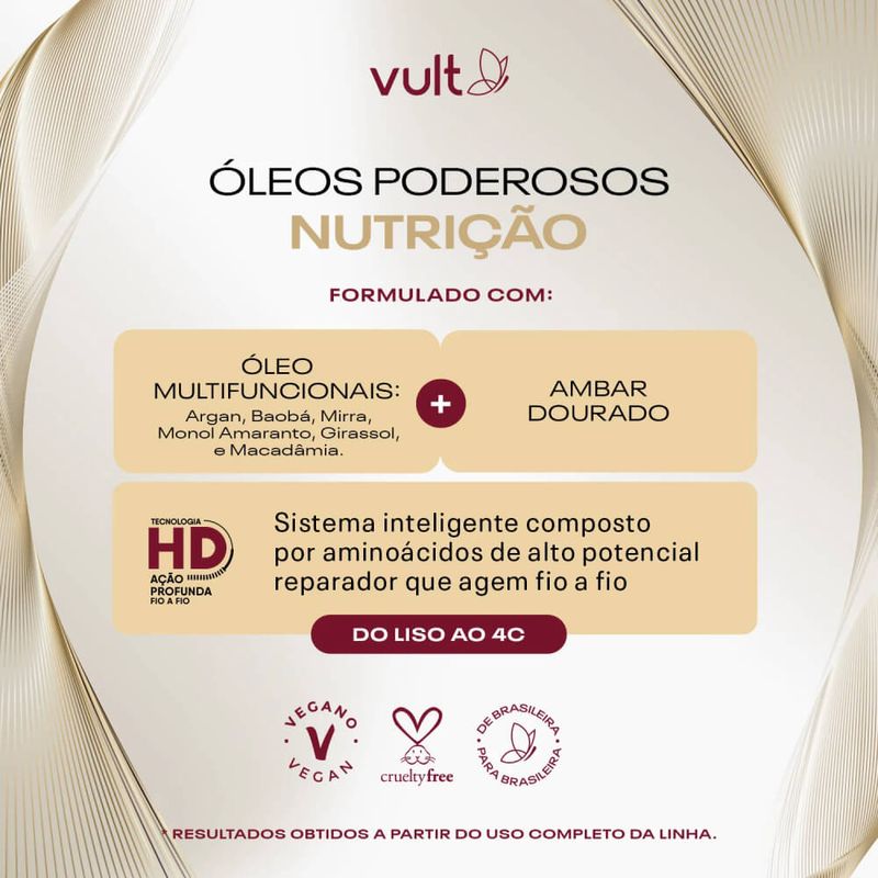 Para resultados ainda melhores, experimente os outros produtos da linha Vult Óleos Poderosos Nutrição!