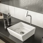 O design da cuba de apoio Capri foi elaborado para ambientes mais modernos sem perder o toque de sofistifcação é ideal para banheiros com bancadas e torneiras de bica alta.