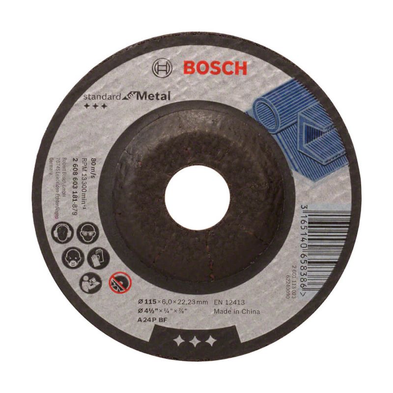 O disco de desbaste Bosch Standard for Metal possui ótimo desempenho em desbaste em metal. São produzidos com grãos abrasivos de óxido de alumínio de alta qualidade que dão rendimento e velocidade em suas aplicações, além das telas de fibra de vidro feitas com precisão e simetria que trazem alta estabilidade para o disco. São fabricados sob alto padrão de qualidade em conformidade com as normas internacionais (EN 12413) trazendo máxima segurança durante sua aplicação. São indicados para corte de metais ferrosos e não ferrosos e ferro fundido e utilização em esmerilhadeiras manuais.