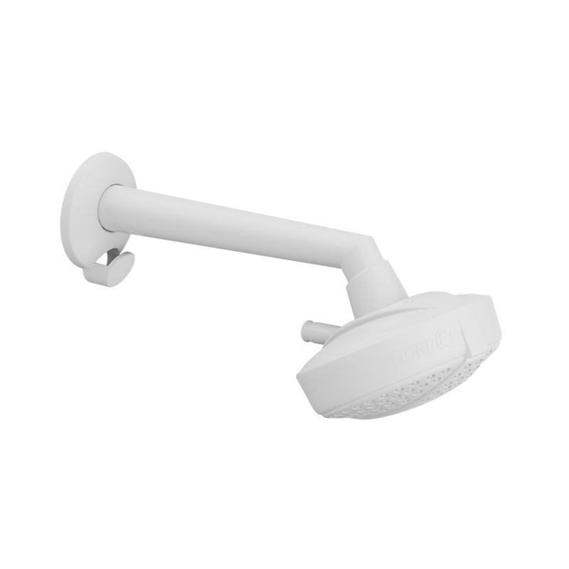 A cor branca da ducha é neutra e se harmoniza facilmente com a maioria dos estilos de decoração de banheiro, adicionando um toque de simplicidade e elegância ao ambiente.