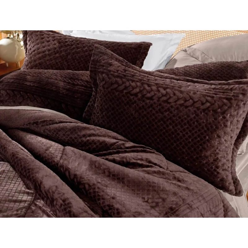 O grande diferencial é o plush 100% poliéster que proporciona um toque ultramacio e aveludado, envolvendo você em uma sensação de carinho incomparável. A malha fio penteado com tratamento antipilling assegura que o edredom não forme bolinhas, mantendo sua qualidade e beleza por muito mais tempo.