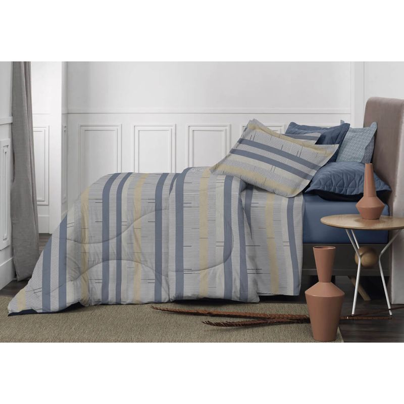 Produzido em poliéster de última geração com toque macio e aveludado e ação anti-pilling que impede e formação de bolinhas e garante maior durabilidade ao tecido, o Edredom Toque Acetinado Interline proporciona uma noite de sono super aconchegante. A padronagem em listras de diferentes formas e texturas é clássica, versátil e de fácil coordenação com as demais peças do seu enxoval. A cartela de cores traz tons neutros e prioriza tonalidades de cinza, permitindo uma composição sóbria e elegante ao ambiente.
