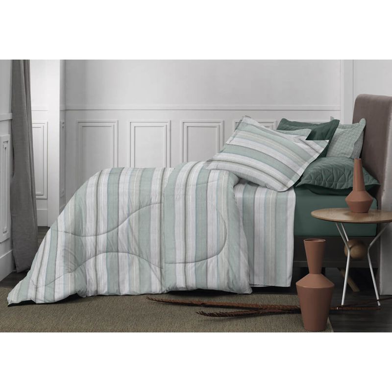 O Edredom Toque Acetinado Moove proporciona toque macio e agradável em contato com a pele, além de deixar a decor super estilosa. O tecido em 100% poliéster de última geração com leve brilho acetinado, garante o conforto necessário para uma noite de sono perfeita. As listras texturizadas em tonalidades neutras e suaves agregam estilo e beleza, proporcionando uma decor moderna e aconchegante ao ambiente. Tecido não amassa, dispensando o uso do ferro de passar.