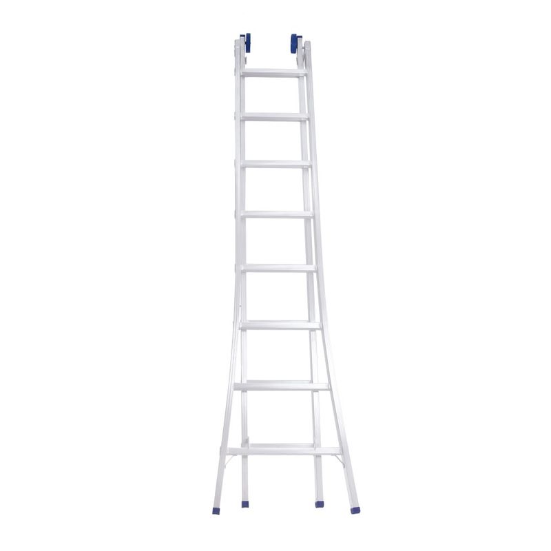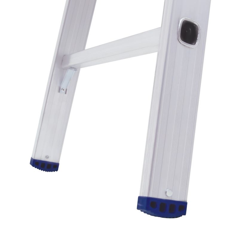 A Escada Extensiva Mor 2x8 oferece três modos de utilização, os quais podem se adequar a sua necessidade: extensível, aberta e simples. Com 3 anos de garantia, ela suporta até 150 Kg e alcança até 4,21 metros. Sua estrutura é confeccionada 100% em alumínio produzido na Mor, garantindo melhor qualidade estrutural ao produto, pois há controle de todo processo de fabricação. Além disso, o alumínio é um material leve e durável mesmo em áreas litorâneas. A escada conta com rodas que facilitam o uso, sistema de articulação com encaixe de travamento que proporciona maior segurança e abertura cônica dos pés e sapatas antiderrapantes, garantindo mais estabilidade.