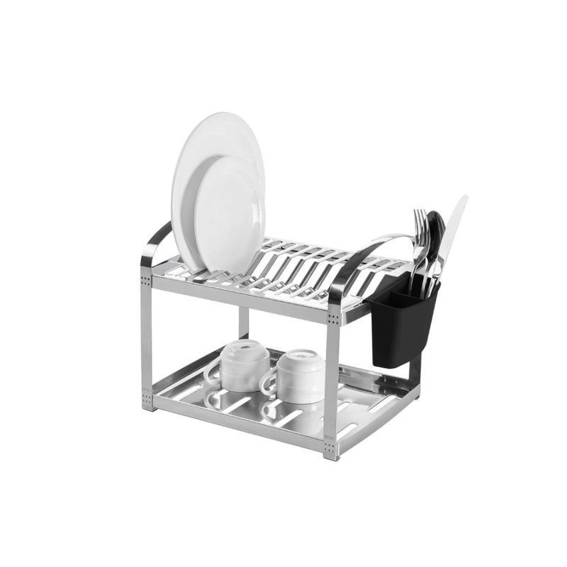 Fabricado em aço inoxidável de alta qualidade, ele garante resistência à corrosão e um brilho duradouro, elevando a estética da sua cozinha. Seu design inteligente de dois andares comporta até 12 pratos, além de ter espaço para copos e um porta-talheres integrado, otimizando cada centímetro da bancada.