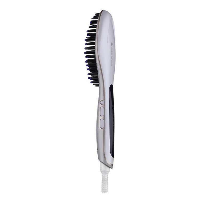 A Escova Magic Liss Cadence possui cerdas largas com acabamento cerâmico que permite aquecimento rápido, até 230oC, e não oscila a temperatura, protegendo o seu cabelo.