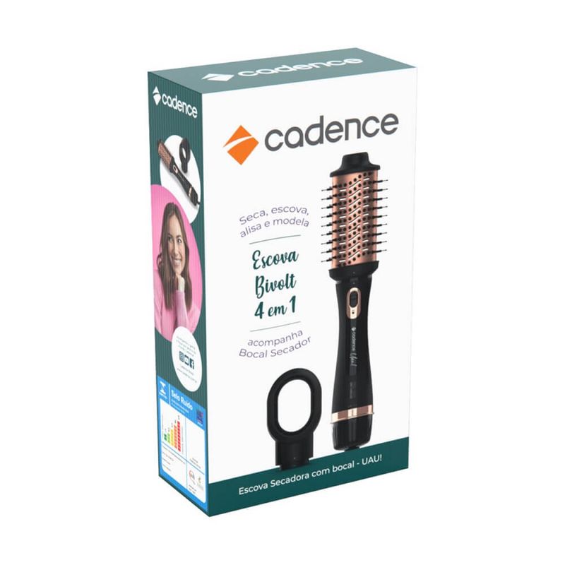 A nova Escova Secadora Uau Cadence não recebeu esse nome por acaso,ela possui bocal secador vertical desmontável, é bivolt manual e por ter dois bocais, ela é versátil, leve, compacta e ergonômica:perfeita para ir na mala e acompanhar você em qualquer viagem.