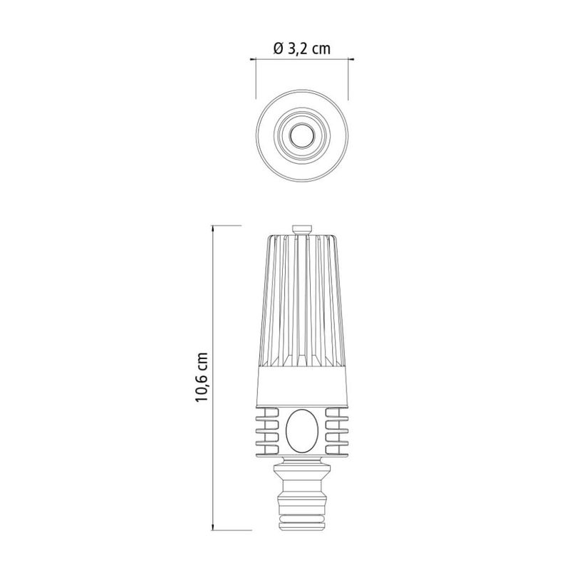 Observação: O jato é regulável, podendo ser forte com pressão para molhar o gramado ou plantas grandes, e um jato suave para molhar culturas mais sensíveis como flores e hortas.