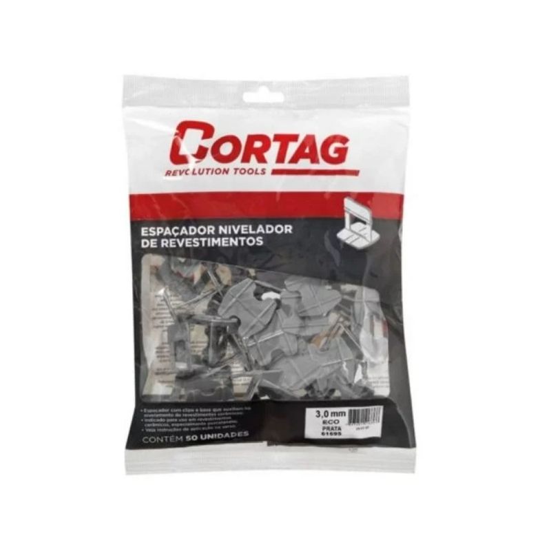 Espaçador com clipe e base que auxiliam no nivelamento de revestimentos cerâmicos.