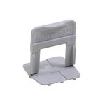 Espaçador com clipe e base que auxiliam no nivelamento de revestimentos cerâmicos.