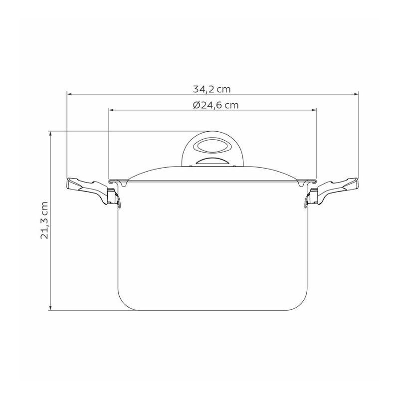 Sua tampa é em alumínio com furos escorredores e travam. E suas alças são de baquelite antitérmico e seu pegador é em nylon, ambos materiais que não aquecem e oferecem maior segurança durante o manuseio.
