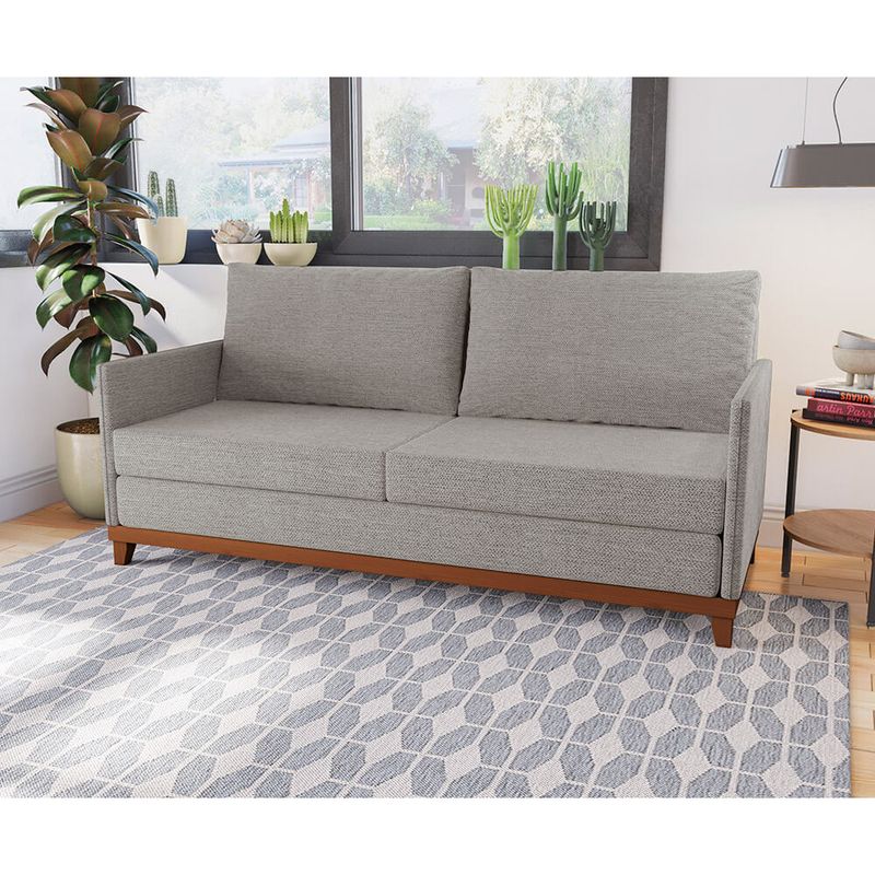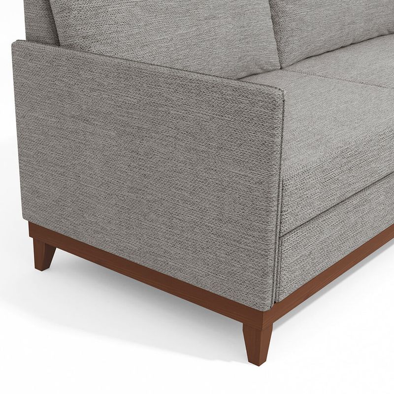 Os pés de madeira conferem estabilidade e um toque natural ao conjunto. Com dimensões de 188 x 90 x 81 cm, o Estofado Cosmo oferece um espaço confortável para três pessoas, sendo perfeito para salas menores ou como complemento em ambientes maiores.
