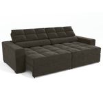 A estrutura do assento, Retrátil, e a estrutura do encosto, Desmontável e Articulado em 6 posições, permitem personalizar seu nível de relaxamento com extrema praticidade. Os Assentos e encosto com puxes adicionam um detalhe de requinte. O Material, Madeira de eucalipto, na estrutura e as corrediças Metálicas garantem durabilidade e um funcionamento suave. A desmontabilidade do Encosto facilita o transporte e a montagem. Este estofado é um diferencial único para quem busca conforto e estilo com a flexibilidade de um design pensado para o seu bem-estar.