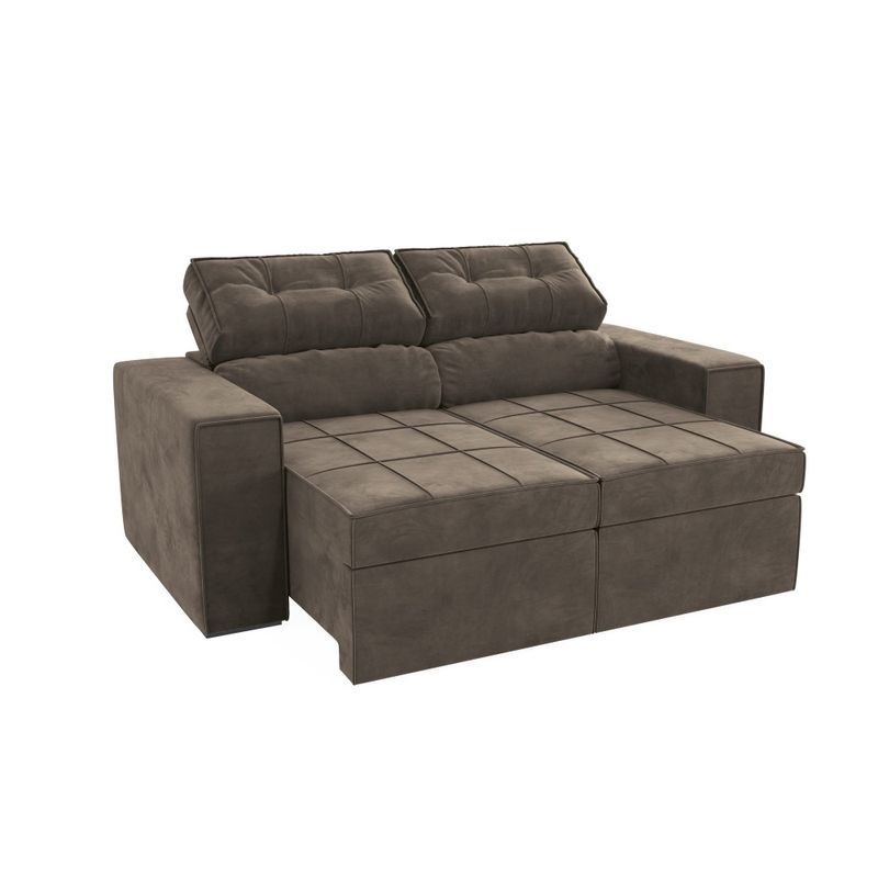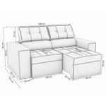 Os assentos retráteis e encosto articulado, com 6 posições, permitem personalizar seu nível de relaxamento, enquanto os assentos e encosto com puxes adicionam um detalhe de requinte. A estrutura robusta em madeira de eucalipto, com Corrediças de madeira, garante durabilidade e um funcionamento suave. A desmontabilidade do encosto oferece praticidade para transporte e montagem. Este estofado é um diferencial único para quem busca conforto e estilo.
