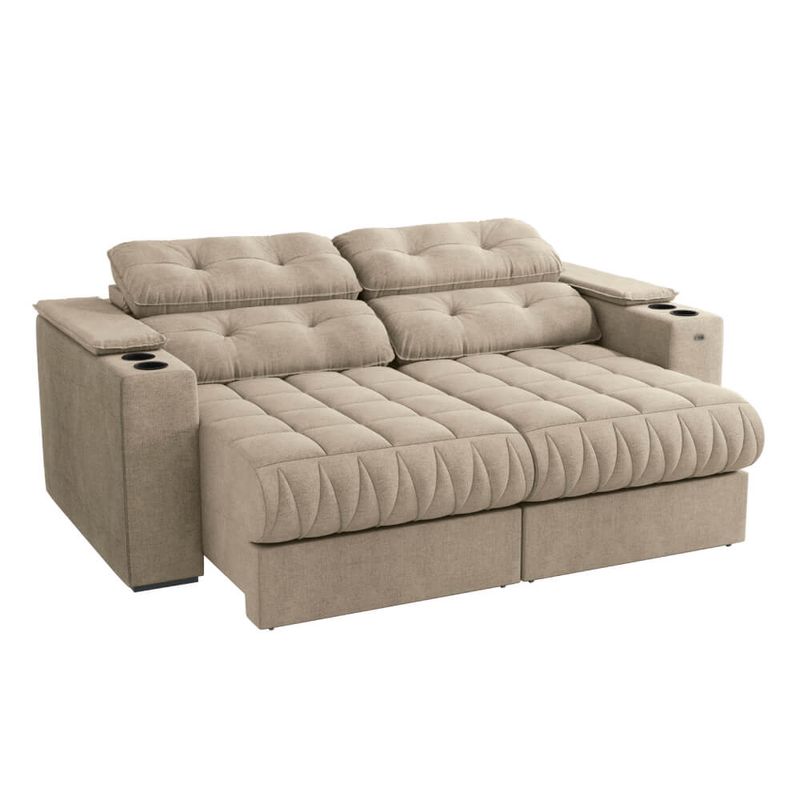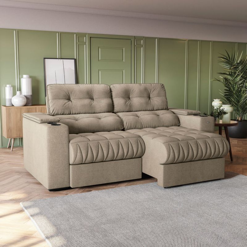 Símbolo de requinte e conforto, o Sofá Premier 2,3m da Kappesberg será o destaque da sua sala de estar. Robusto e muito espaçoso, é a opção perfeita para quem não abre mão de beleza e estilo em todos os momentos. Produzido em estrutura resistente, de madeira de eucalipto e MDF, ele conta com trilho de madeira, facilitando o manuseio, além de contar com assentos retráteis e encostos articuláveis em seis posições, permitindo que você o ajuste conforme a sua preferência. E para tornar seus momentos ainda mais completos, ele possui molas bonnel nos assentos, além de espumas certificadas e enchimento com fibras e flocos, proporcionando o máximo de conforto e aconchego. E com medidas de 1,14m de altura, 2,31m de largura e 1,32m de profundidade, suportando até 120kg por assento, essa será a escolha ideal para todos os ambientes. E revestido com tecido Linho Fendi, o que proporciona um toque suave e gostoso, os diferenciais e destaques desse modelo ficam por conta do seu assento com detalhe curvo, proporcionando mais comodidade, suas costuras e puxes, que garantem um acabamento único, além da almofada do braço retrátil, contando com descanso de copos, tornando seus momentos ainda mais especiais. Cada detalhe pensado para transformar seus momentos de lazer e descanso. Aposte no Sofá Premier da Kappesberg e experimente o máximo de conforto.