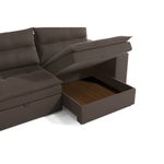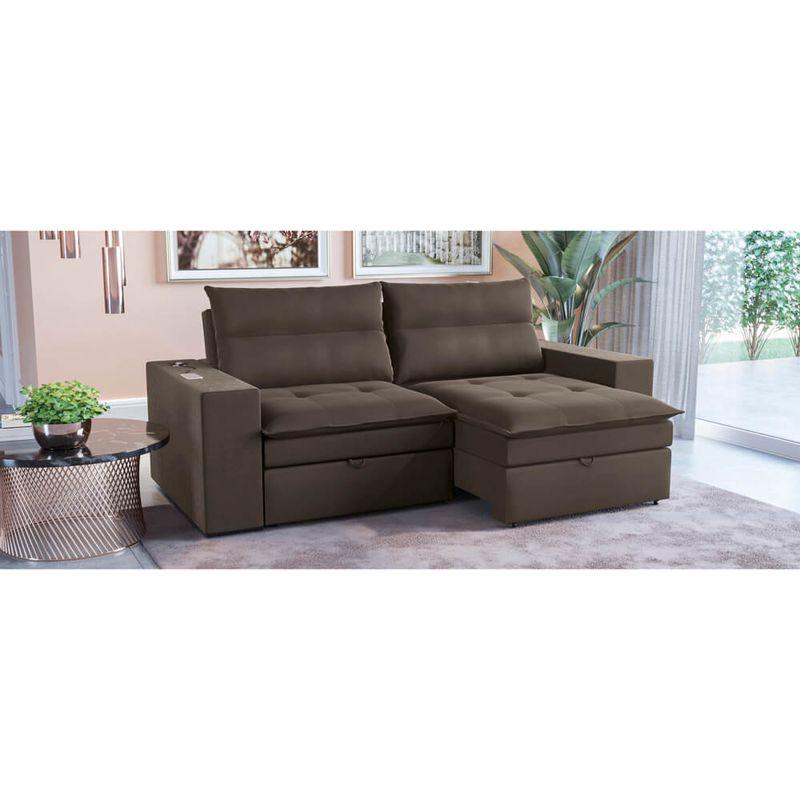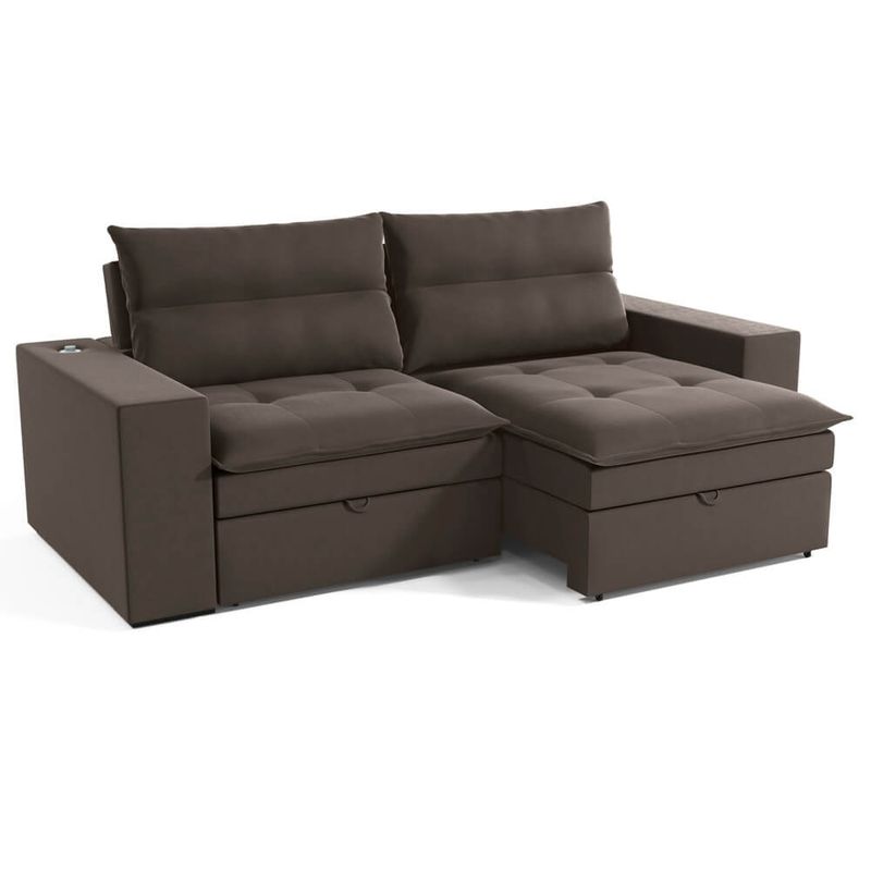 Estofado modulado, assentos retráteis e encosto articulado com 4 posições.